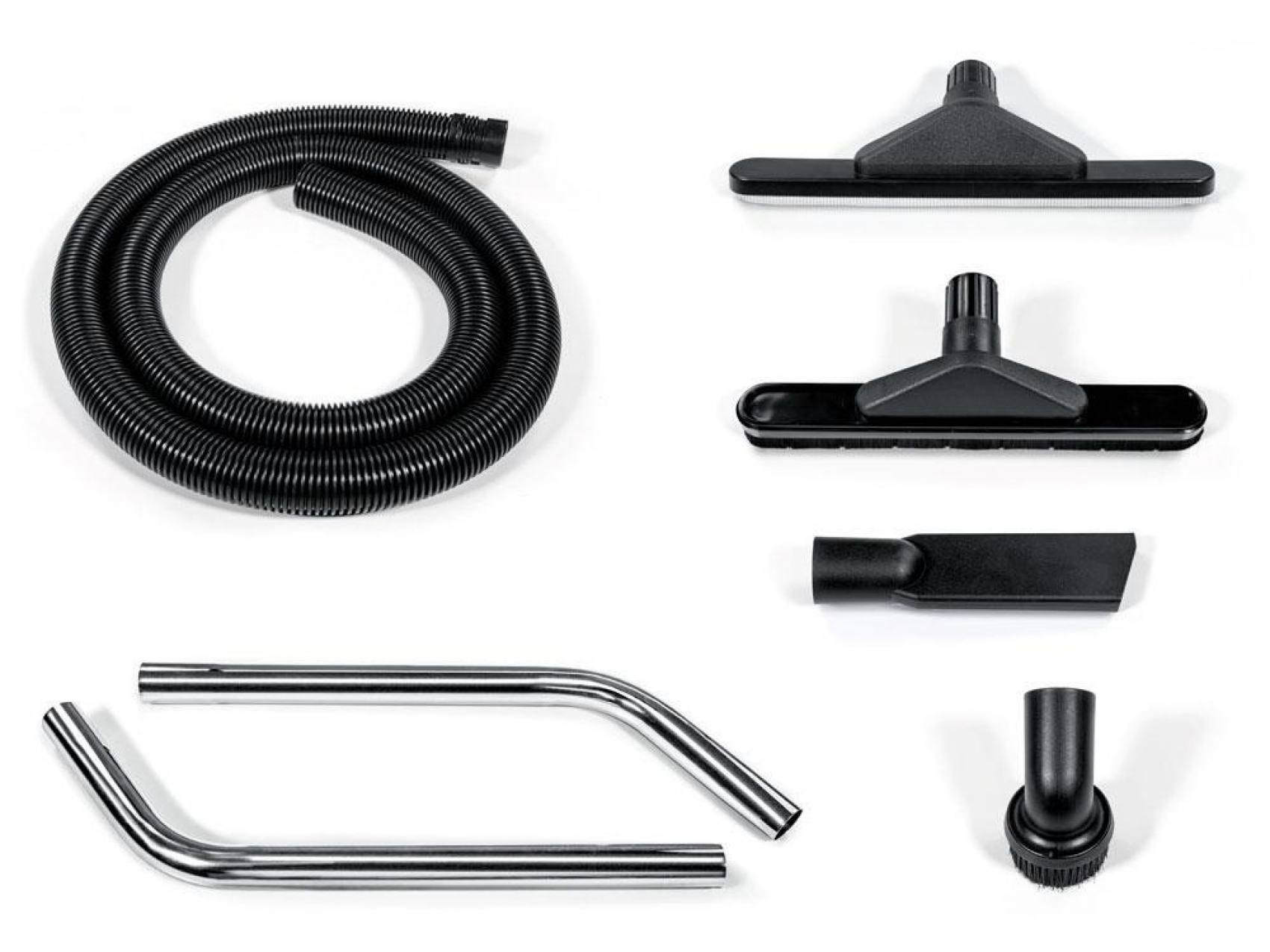 Aspiratorul este montat de serie pe un carucior cu maner pentru putea fi transportat mai usoar si este prevazut cu kitul de golire rapida a apei reziduale din container.